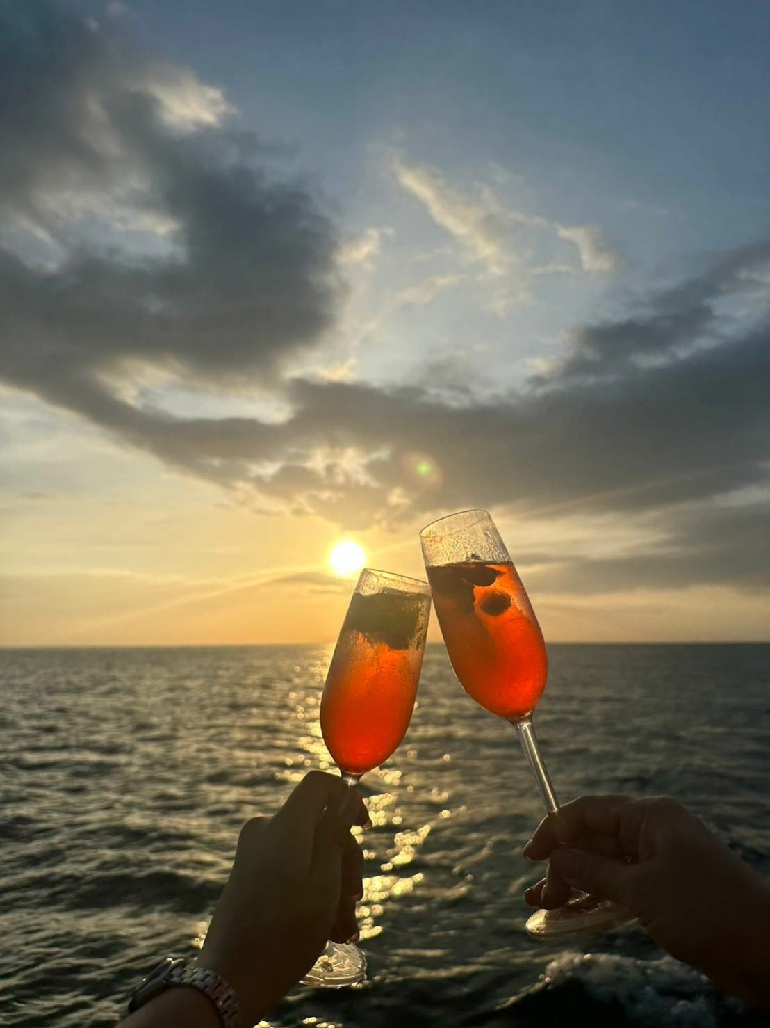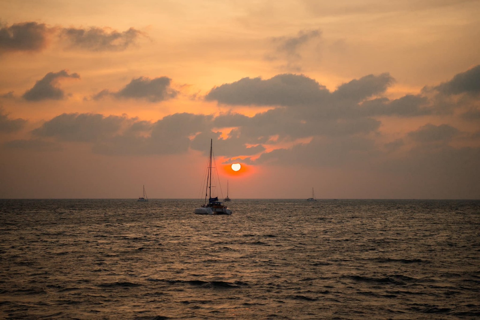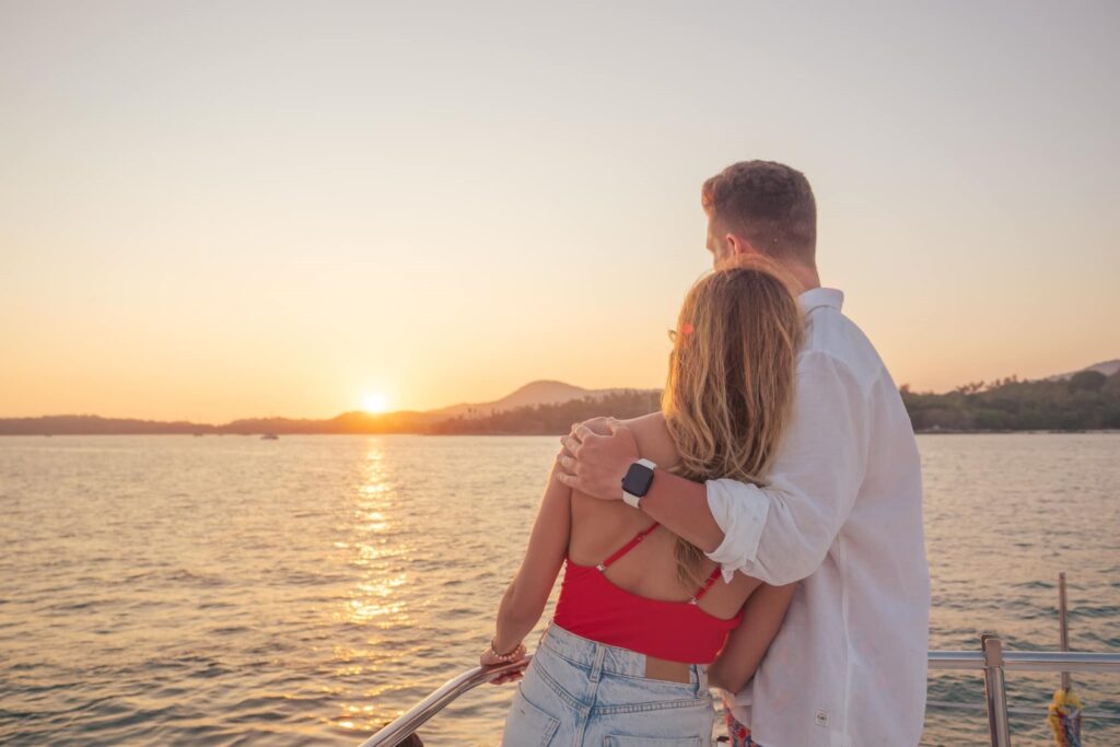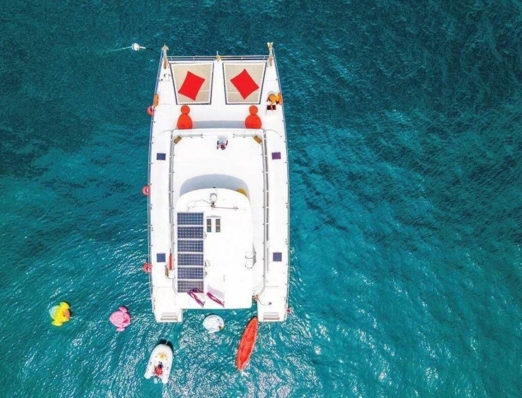 • Романтический закат на катамаране — кульминация путешествия. Вы станете свидетелем того, как солнце, опускаясь к горизонту, окрашивает небо в невероятные оттенки розового, золотого и пурпурного.