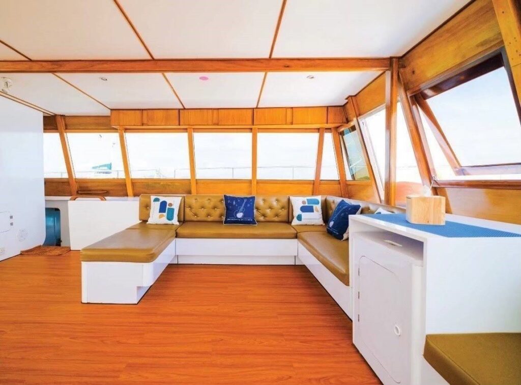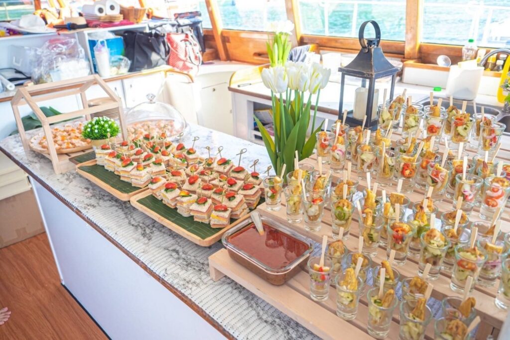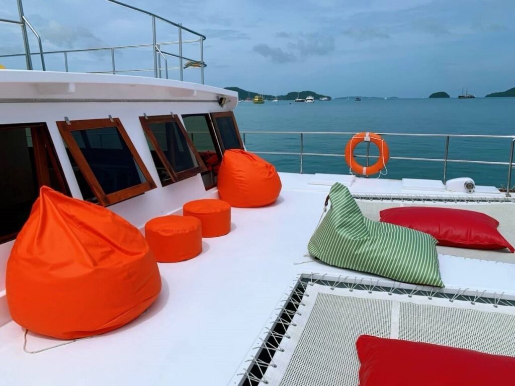 • Уютный ужин на борту — под шёпот волн и лёгкий морской бриз вы насладитесь блюдами местной кухни, свежими фруктами и прохладительными напитками.