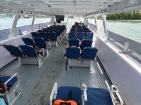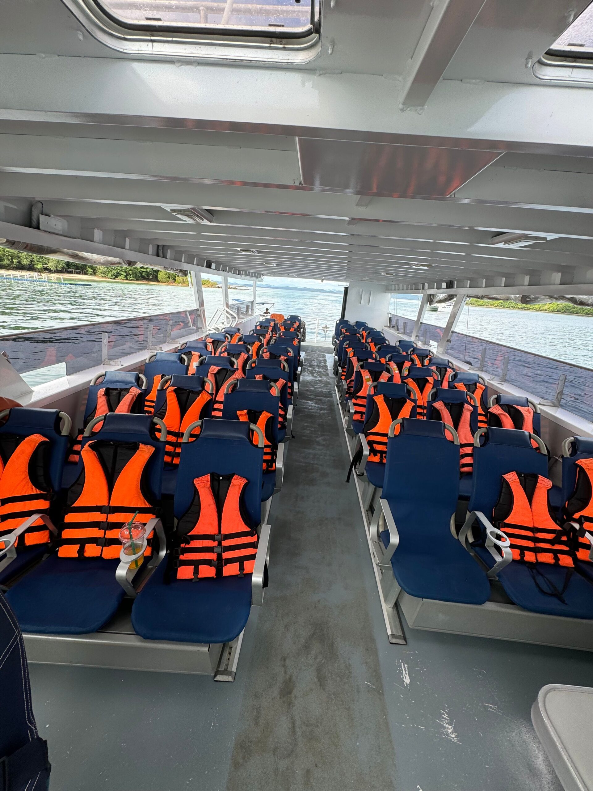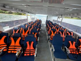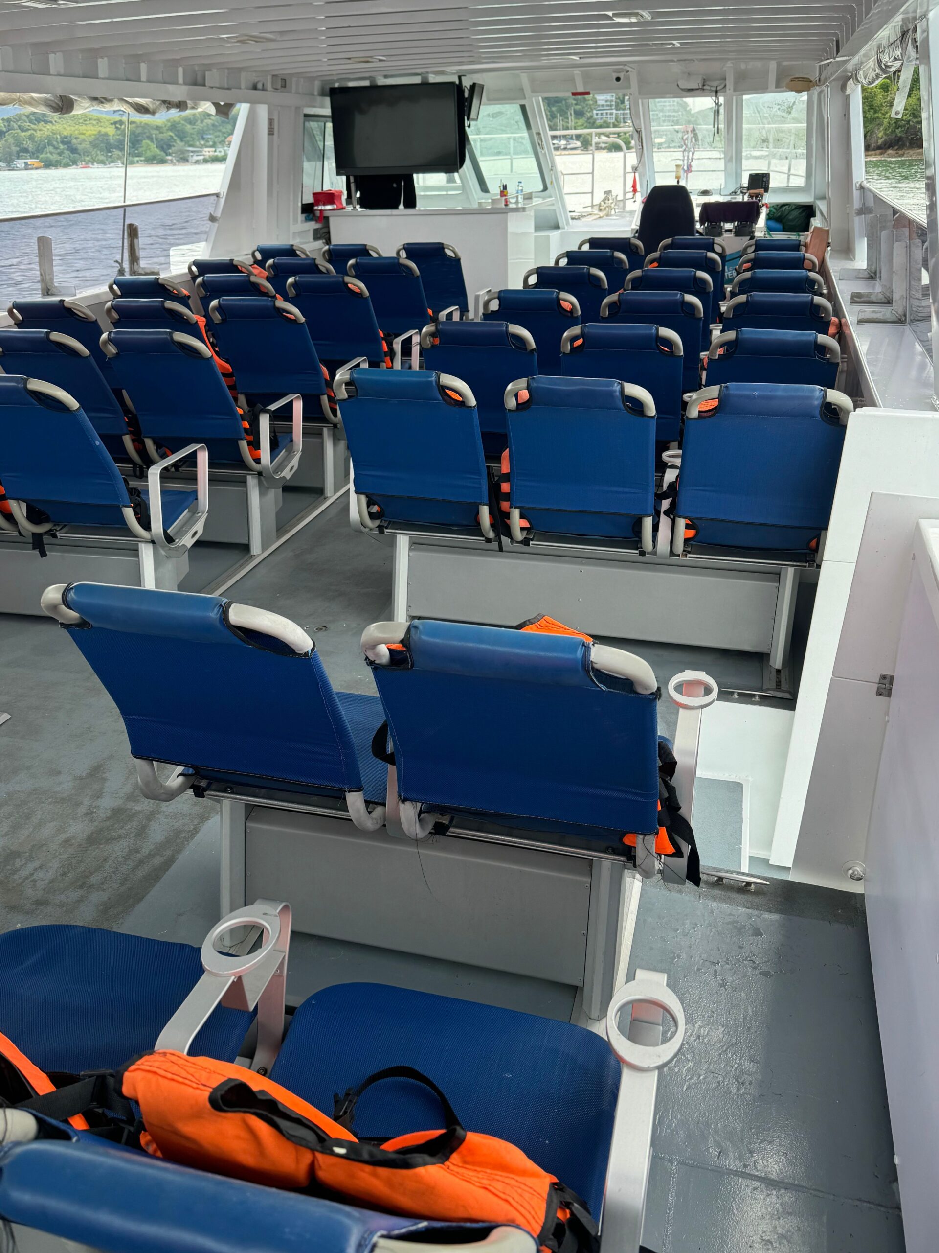 Каждый пассажир располагается в удобном, широком кресле. В салоне достаточно места для свободного передвижения, а с любого места открывается отличный обзор на окружающие пейзажи. Также гости могут подняться на верхнюю палубу, чтобы насладиться свежим воздухом и позагорать. На борту имеется всегда горячий чай, кофе и др. напитки, скоростной wi-fi и зарядка для телефонов.