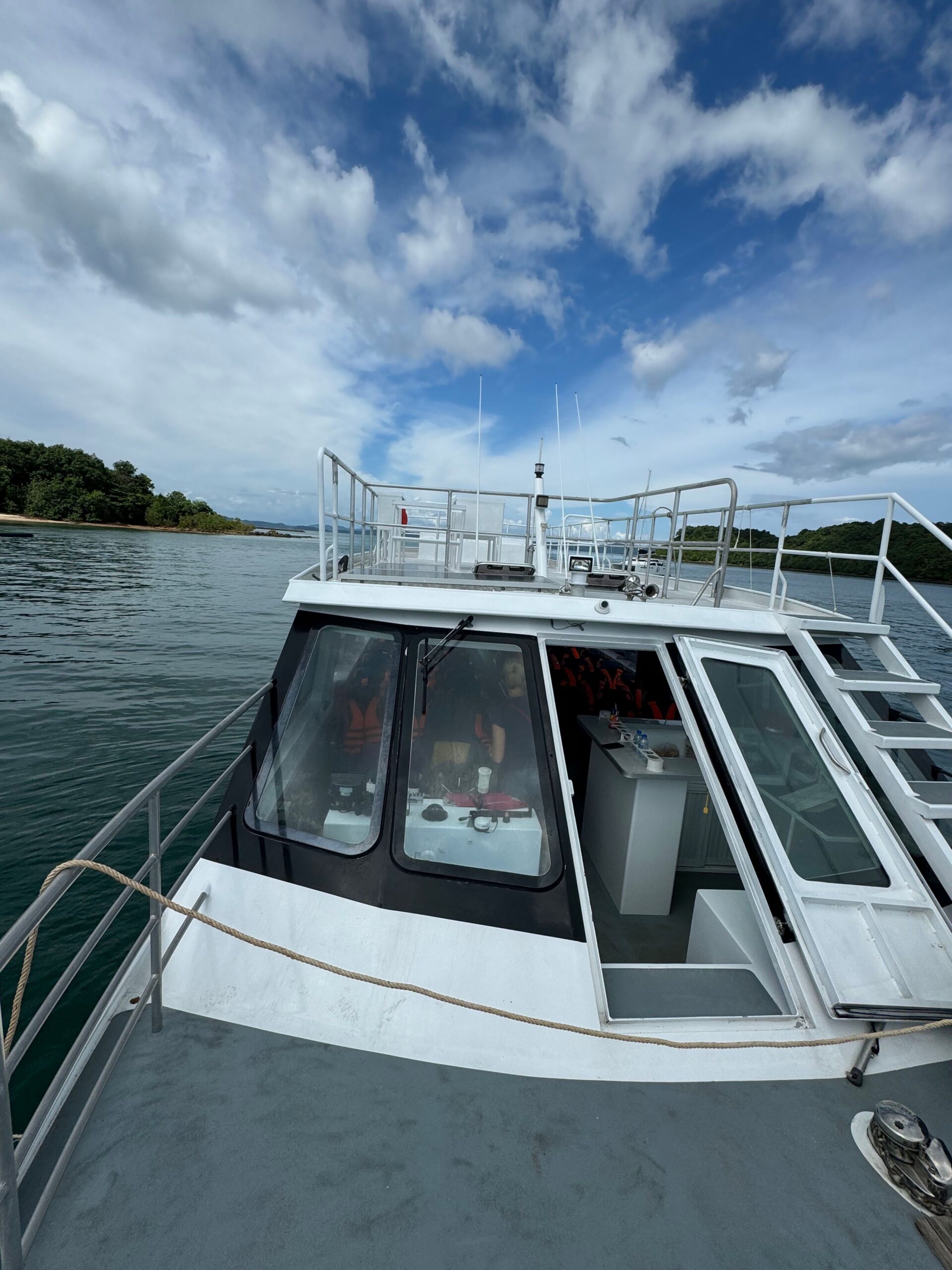 Здесь необыкновенно красивая лазурная морская вода. Лагуна окружена высокими отвесными скалами, покрытыми тропической растительностью. Здесь можно сделать очень красивые фото и видео. Поплавать в прохладной морской воде и попрыгать в воду с верхней палубы катамарана. Потом отдохнуть, выпив чашечку кофе или чая прямо на борту катамарана. А также, по скоростному WiFi, можно связаться с родными и друзьями.