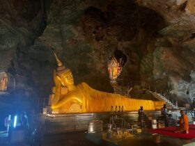Остановка у пещеры обезьян. Посещение древнего храма Суван Куха и впечатляющей пещеры со сталактитами.