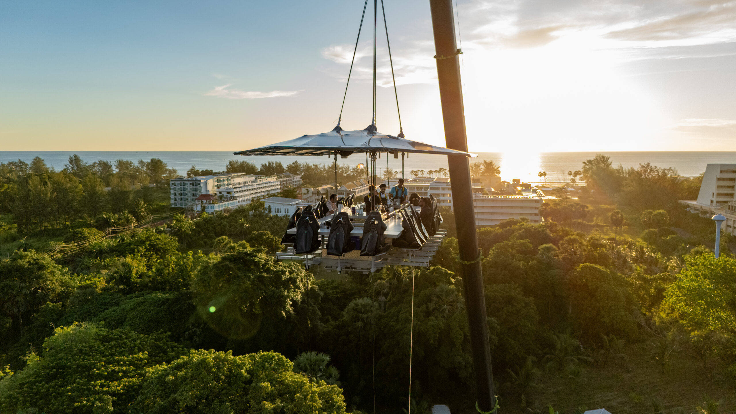 Dinner in the Sky — это уникальный ресторан, где гости поднимаются на высоту 50 метров над землей на специальном крановом подъёмнике. Это не просто ужин, а настоящее воздушное приключение с потрясающими видами и первоклассным сервисом.