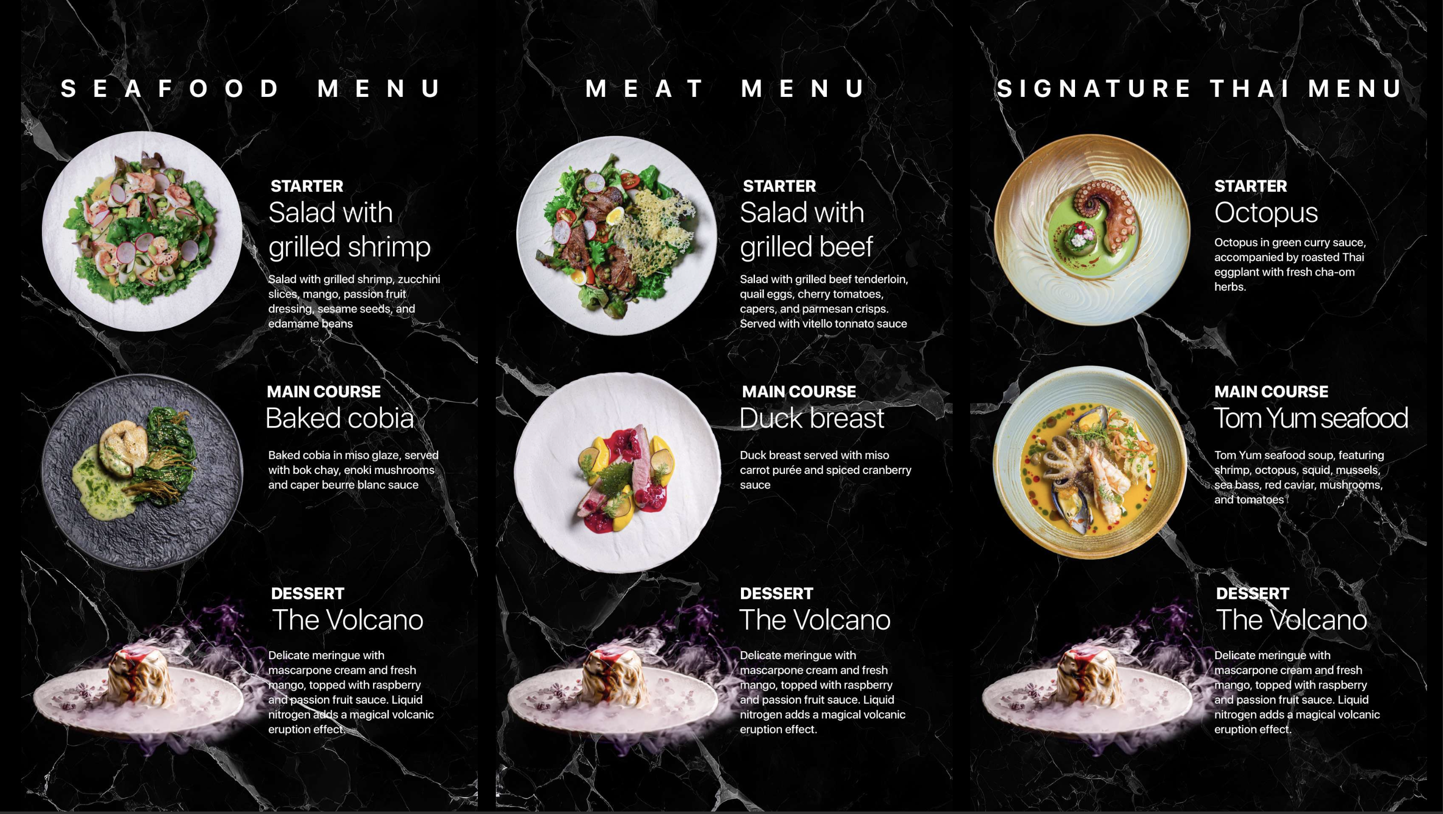 • Фирменный десерт «Вулкан» с эффектом извержения
