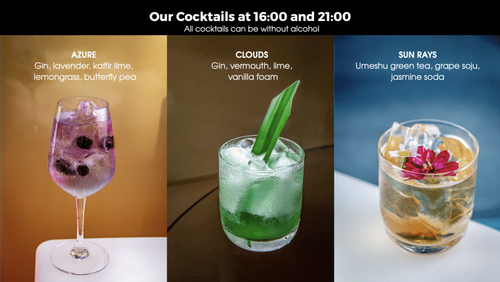 • Приветственный напиток в лаунж-зоне перед подъёмом
